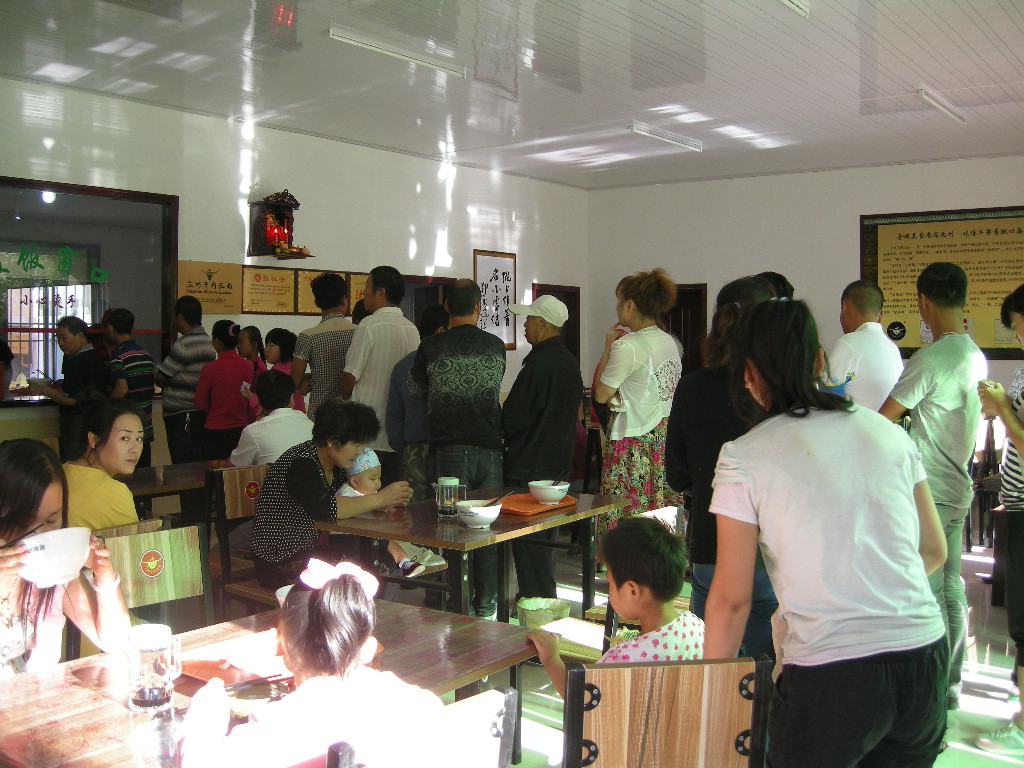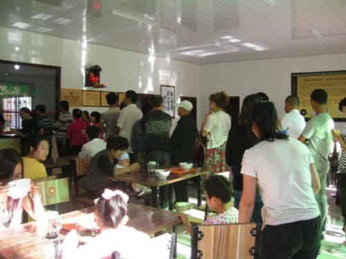 食客們拿著小票自覺的排起長隊,都排到門外了,只為等待著那一碗噴香誘人的蘭州牛肉拉面。