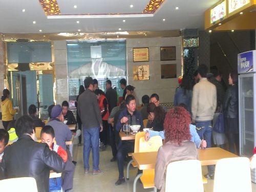 金味德蘭州牛肉拉面禮縣加盟店位于甘肅省隴南市禮縣城關鎮城沿,經營面積400平方米,一層經營金味德蘭州牛肉拉面,二層經營金味羊肉泡鏌,憑借正宗的金味德蘭州牛肉拉面及金味德特色營養蔬菜面、金味羊肉泡饃等多種面品,吸引了大批的消費者光顧,店內外等待吃面的顧客排成了長龍。