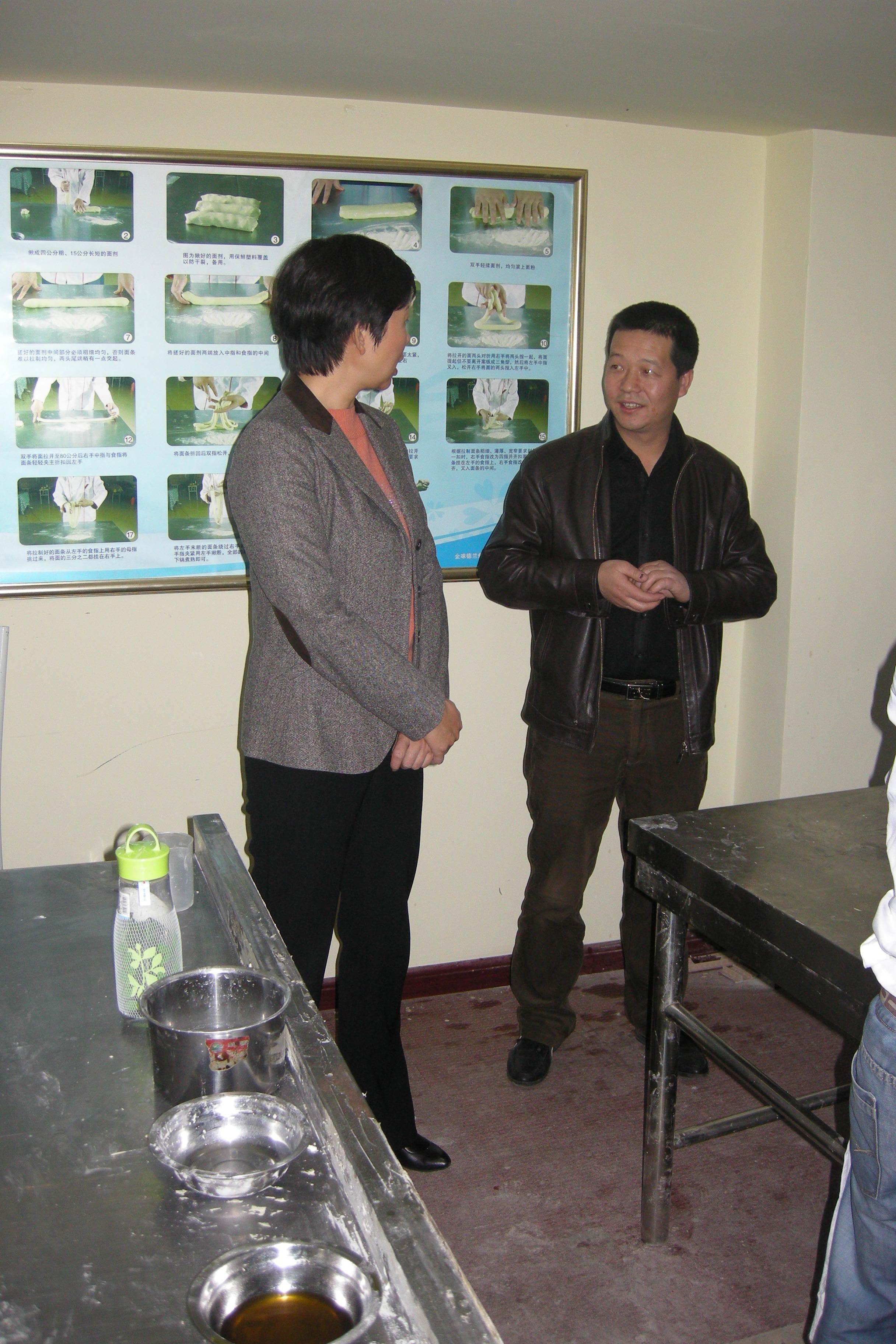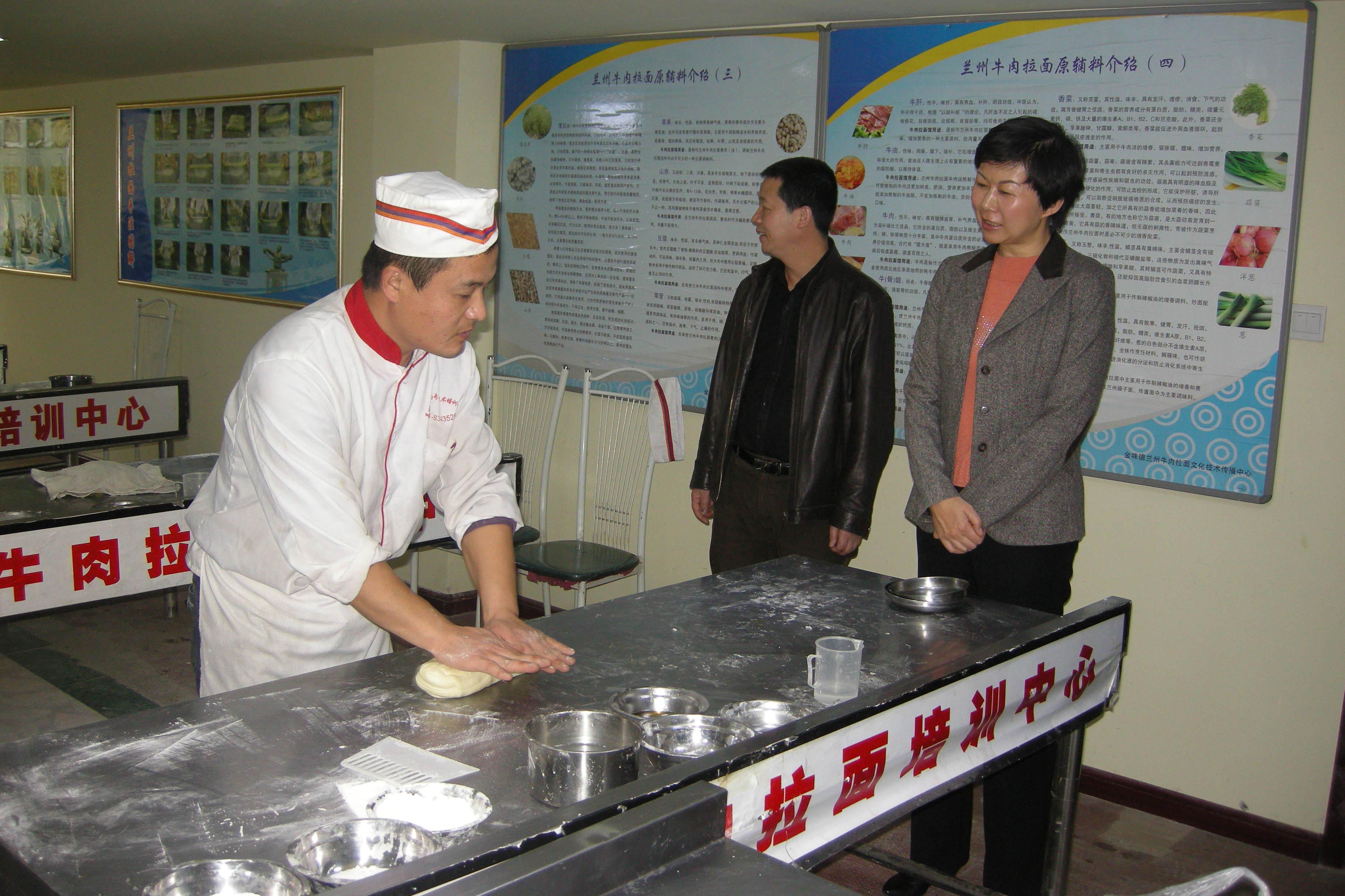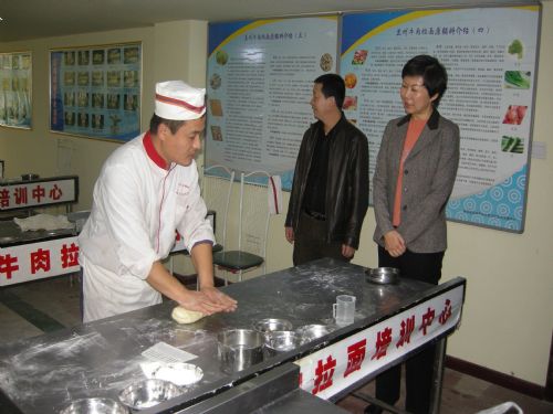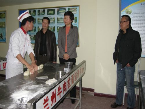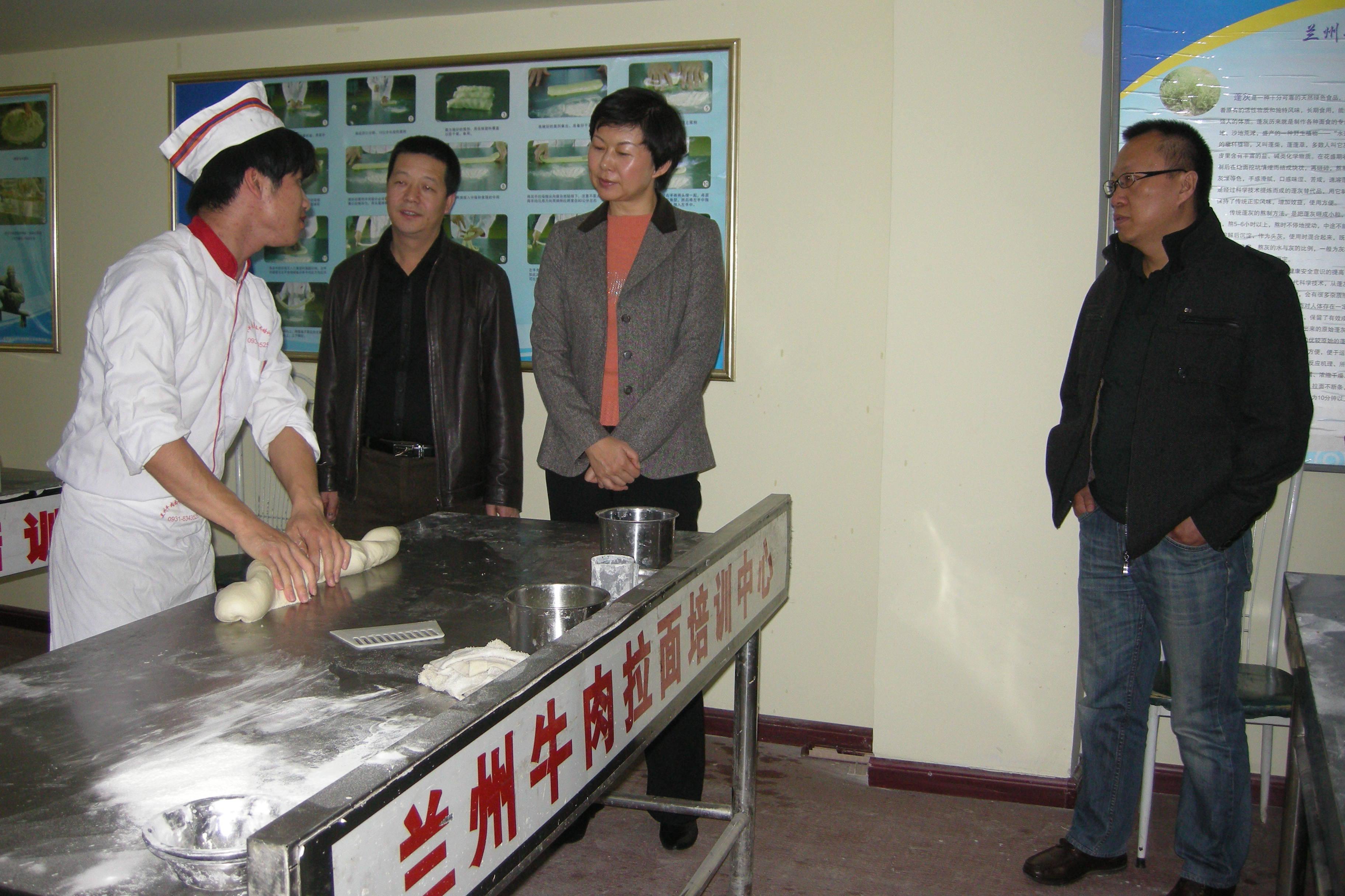 8、蘭州市委常委常務副市長在蘭州牛肉拉面培訓中心、金味德蘭州拉面天水路店調研。