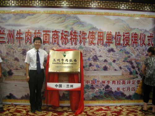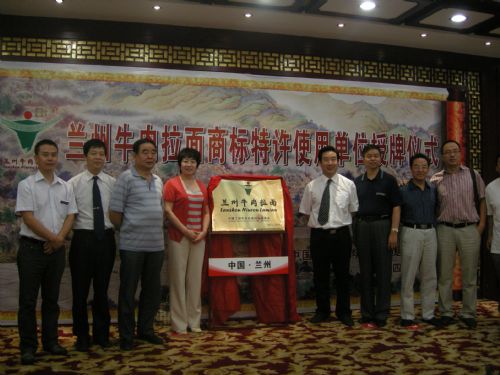 7月4日,在蘭州市舉行了“蘭州牛肉拉面”注冊商標特許使用單位授牌儀式,金味德拉面總店被授予首批“蘭州牛肉拉面”注冊商標特許使用牌匾的單位。這意味著今后無論在哪個地方,只要看到懸掛“蘭州牛肉拉面”注冊商標的面館,就能吃上正宗的蘭州牛肉拉面。