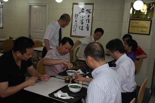 廈門市政府接待辦主任、蘭州市駐廈門辦事處主任、廈門江頭街道辦事處主任、甘肅金味餐飲有限公司董事長共同為福建廈門金味德蘭州牛肉拉面店揭牌