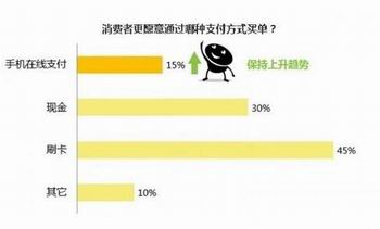 大眾點評數據顯示:大部分客人在買單時依然更喜歡刷卡或者支付現金,但用手機支付買單的客人也在逐漸增多,餐廳可以嘗試開通手機在線支付等新興支付業務,目前尚無需手續費。