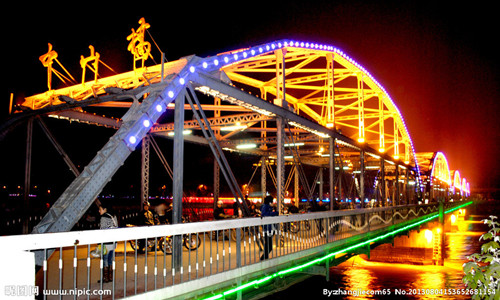 黃河鐵橋位于蘭州城北的白塔山下、金城關前,有"天下黃河第一橋"之稱,是蘭州市內標志性建筑之一。