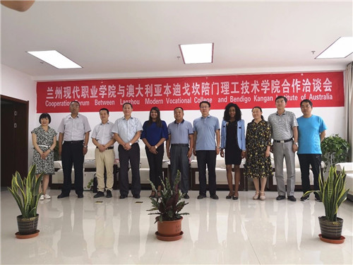 蘭州現代職業學院領導與澳大利亞本迪戈坎陪門理工技術學院代表團合影。