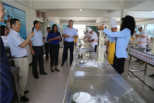 代表團到興隴蘭州牛肉拉面職業培訓學校,興隴國際商學院進行實地考察。