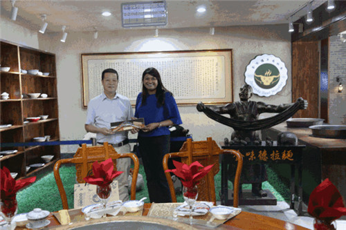 代表團在中國蘭州牛肉拉面體驗工坊對牛肉面始祖“熱鍋子面”進行了解。