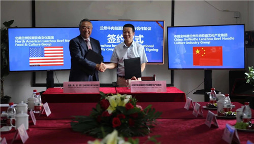 同蘭州金味德牛肉面文化產業集團董事長梁順儉簽訂意向性合作協議。根據協議,計劃近期在美國、加拿大、墨西哥等三國各開設一家蘭州金味德牛肉面分店。未來將開設百家分店,把蘭州牛肉面餐飲及文化傳播出去。