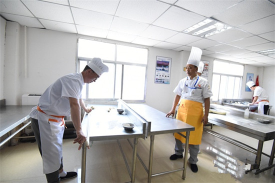 從事拉面工作45年的古立新老師傅正在耐心地指導學員。