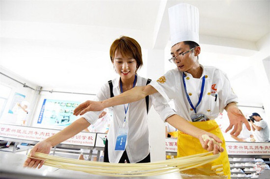 7月19日下午,由每日甘肅網(wǎng)和蘭州市委網(wǎng)信辦組織的“2018年全國重點網(wǎng)絡(luò)媒體、網(wǎng)絡(luò)大V甘肅行”采訪團走進金味德蘭州拉面文化產(chǎn)業(yè)集團的牛肉面博物館和體驗工坊,體驗蘭州拉面的傳統(tǒng)制作技藝,身臨其境地體驗蘭州牛肉面制作中的獨特魅力。