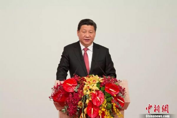 資料圖:2014年12月20日,中共中央總書記、國家主席、中央軍委主席習近平出席澳門回歸祖國15周年大會暨澳門特別行政區第四屆政府就職典禮。圖為習近平發表重要講話。中新社發 盛佳鵬 攝