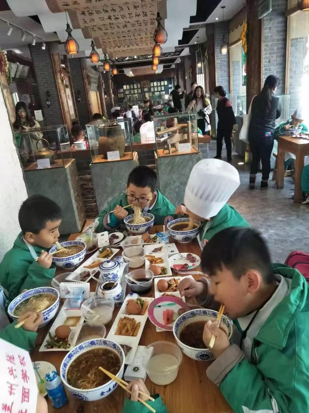 在興隴牛肉面培訓老師的帶領下,孩子們親眼見證并親自體驗了“一碗面”的制作過程——和面、揉面、出面、拉面、撈面等一系列過程。每一個過程、每一個環節都有很多的叔叔在認真地制作,這才有了一碗熱氣騰騰、美味可口的牛肉面被端上餐桌。當孩子們親眼看到了這些時,老師們給孩子們說道:“碗內一分鐘,廚內更多功,糧食大家也親自體驗了要經過多少道工序才能變成美味食物,所以我們都要節約糧食哦!” 后面用餐孩子們都把碗吃的干干凈凈的。