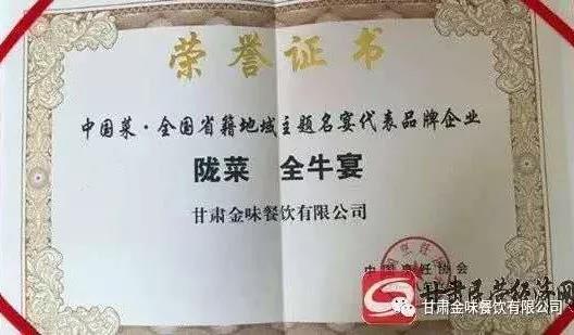中國名宴證書