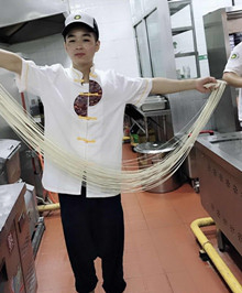 抻拉是一個技術性很強的工作,初學者很難掌握要領。同樣的面團,在有經驗的老廚師手中,不但拉面速度快(一般只需10秒鐘左右),且拉出的面條粗細均勻,且不斷裂,而初學者就很難做到。一個面節正好拉一大碗面,每拉一下,要在手腕上回折一次,拉到最后,雙手上下抖動幾次,則面條柔韌綿長,粗細均勻。一般二細均為7扣,細的則為9扣,毛細面可以達11扣,條細如絲,且不斷裂,真可謂中國烹飪之精華。面條光滑筋道,在鍋里稍煮一下即撈出,柔韌不粘。有句順口溜形容往鍋里下面:"拉面好似一盤線,下到鍋里悠悠轉,撈到碗里菊花瓣"。觀看拉面好像是欣賞雜技表演。