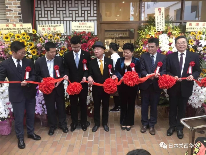 當天,包括中華蘭州拉面株式會社社長康主恩,甘肅省商務廳特派專員、蘭州牛肉拉面國際聯盟主席梁順儉,國際飲食養生研究會副會長侯同明,日神通商株式會社社長田國輝,以及中國駐大阪總領館商務室負責人孫淑強、日中經貿中心常務理事池田稔兩位重要嘉賓齊聚現場,共同參加了神戶首家“中華蘭州牛肉拉面”的開業慶典。日本《關西華文時報》總編輯叢中笑也應邀參加了儀式。