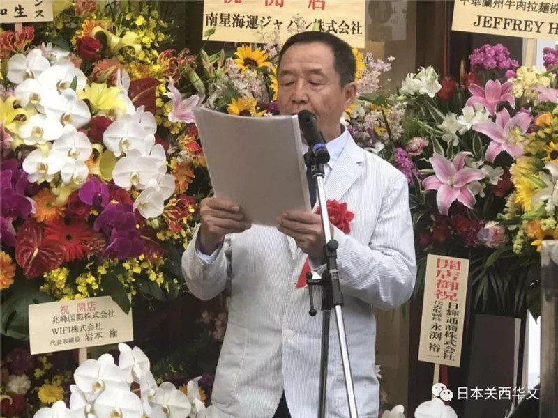 親臨現場的兩位嘉賓,日神通商株式會社社長田國輝發表了講話,而國際飲食養生研究會副會長侯同明則宣讀了該會會長張文彥的賀信。在賀信里,張文彥會長表示:蘭州拉面歷史悠久,味美,爽口,實惠,在中國被譽為“華夏第一面”,深受世界各是顧客歡迎。這次蘭州拉面落地神戶,必將造福一方并贏得食客青睞。