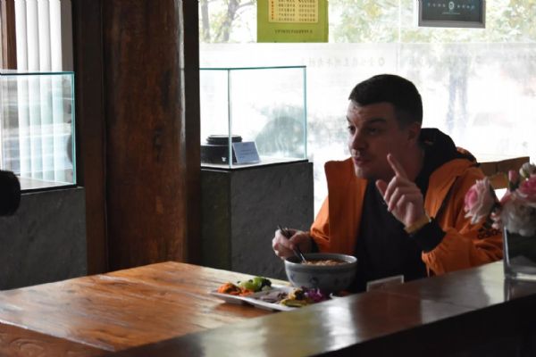 11月5日,人民日報記者、英國知名網紅、中外文化體驗者司徒建國和他的團隊來到金味德拍攝蘭州牛肉面。