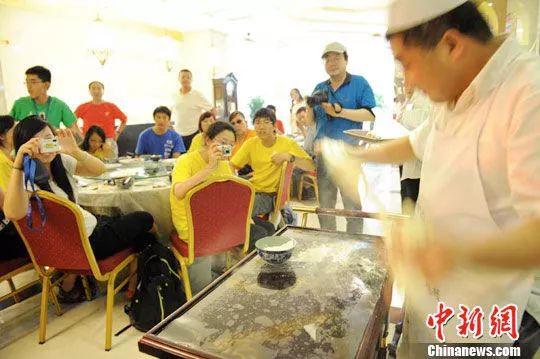 56歲的王昕是蘭州人,30多年前移民日本,現在是日本甘肅同鄉會名譽會長。“此次是受同鄉會僑胞所托,尋訪蘭州牛肉面秘方和推廣人才。”8日,他在蘭州接受中新社記者采訪時說,日本甘肅同鄉會上百名僑胞計劃“眾籌”將正宗蘭州牛肉面和其飲食文化故事帶到日本的每個中華料理店。