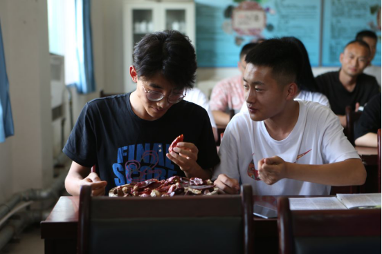 ↑7月10日,在蘭州市興隴蘭州牛肉拉面職業培訓學校,學生學習辣椒等調味料的使用。