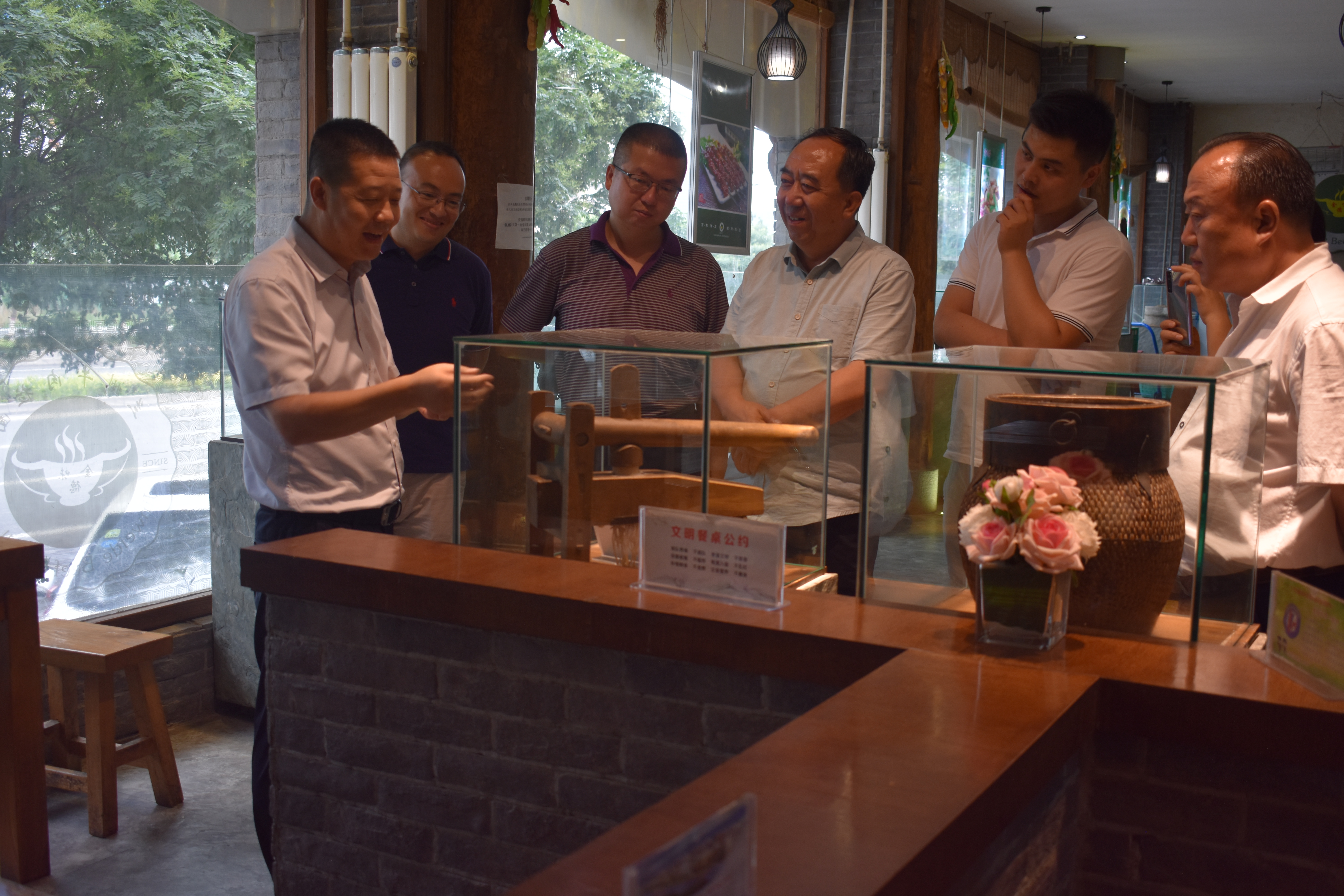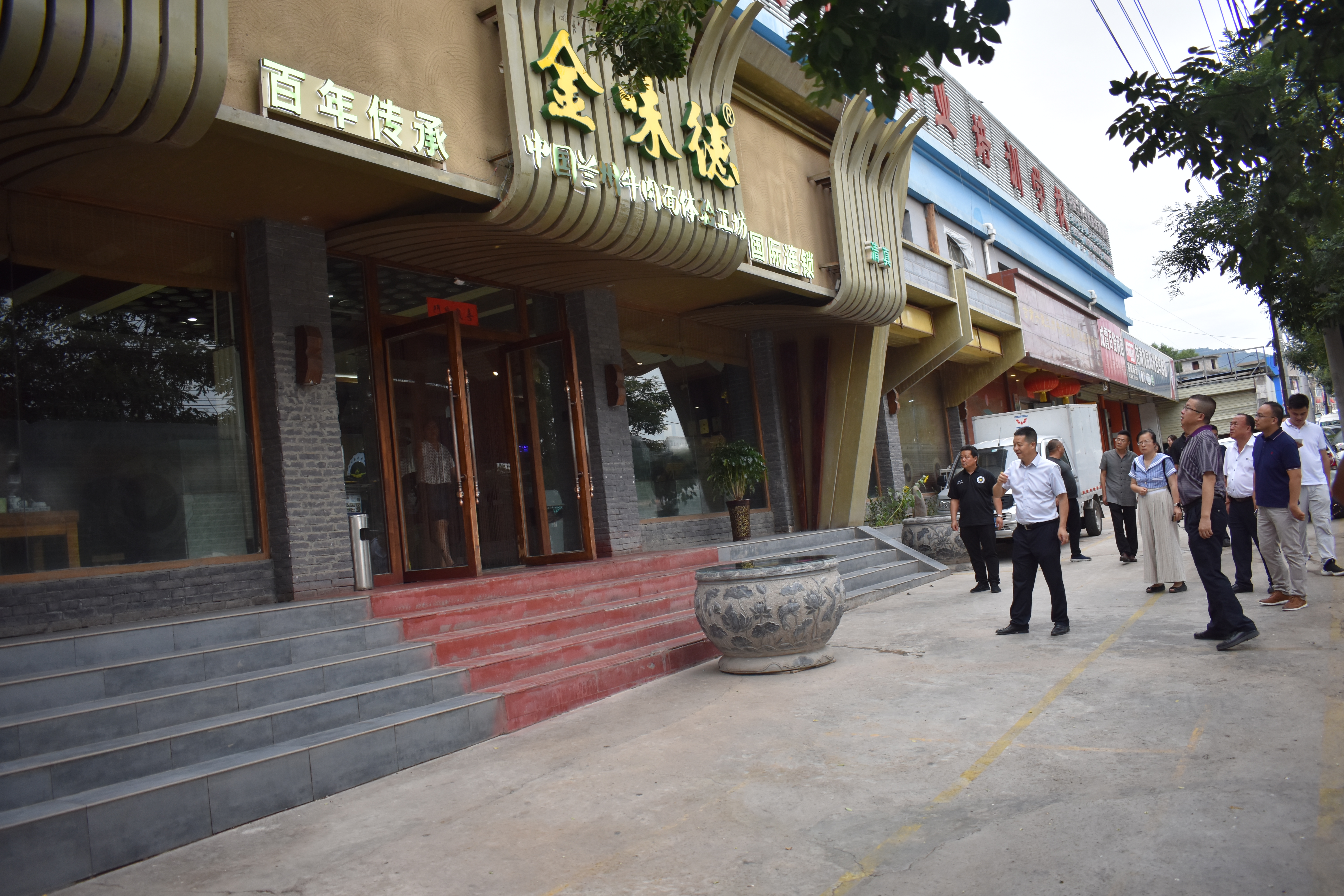 調研組在金味德蘭州牛肉拉面體驗工坊體驗蘭州牛肉拉面產業文化。