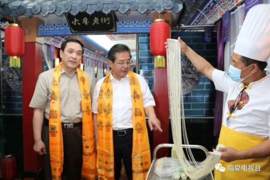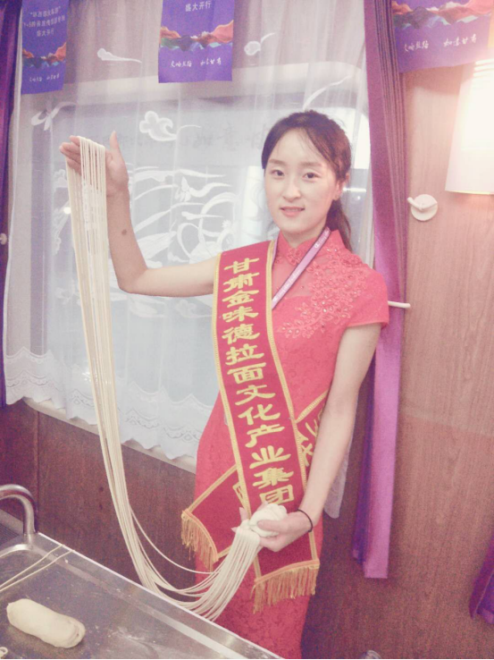 在“環(huán)西部火車游”旅游專列的火車老街主題區(qū),金味德集團的拉面師為參加活動嘉賓展示了精湛嫻熟的拉面技術。
