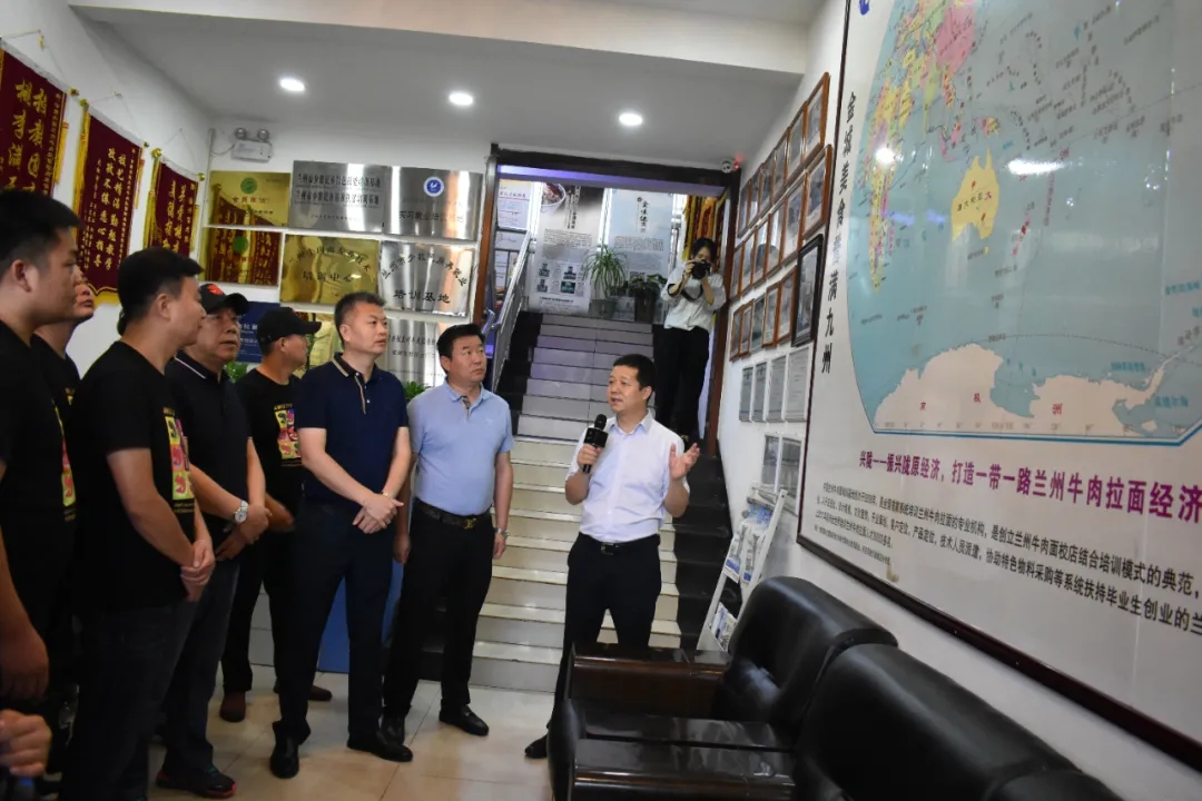 參訪團一行參觀考察甘肅興隴蘭州牛肉拉面職業培訓學校、興隴蘭州牛肉拉面國際商學院;集團董事長梁順儉介紹公司發展情況及講解金味德蘭州牛肉拉面產業集團組織架構。