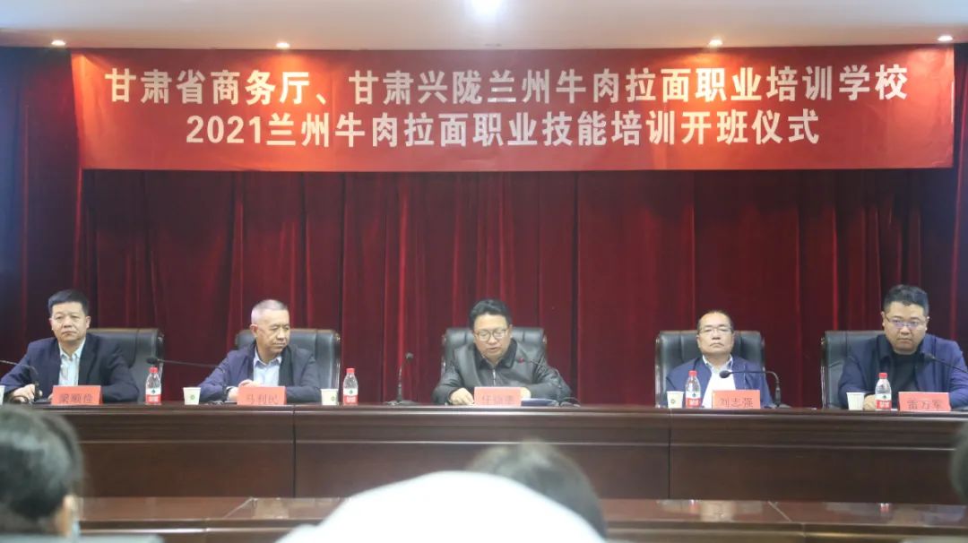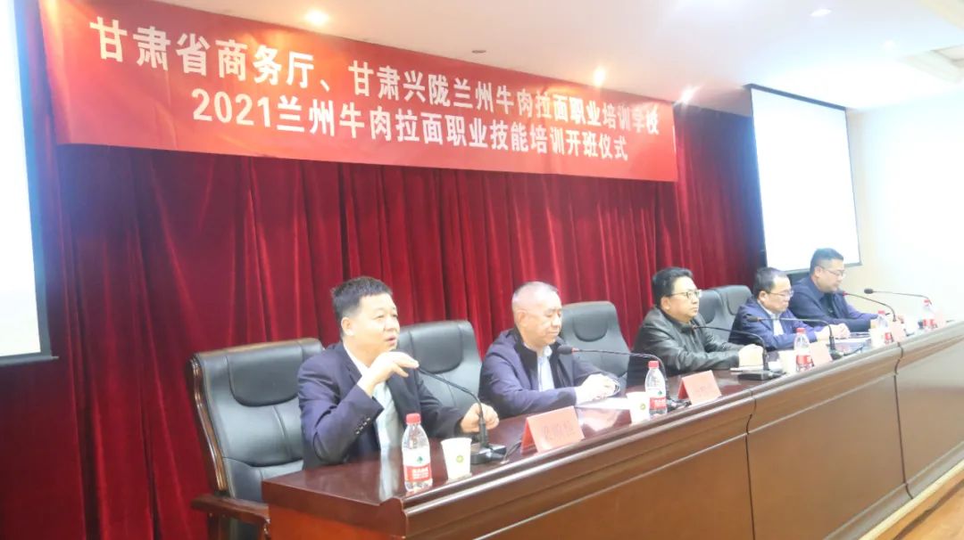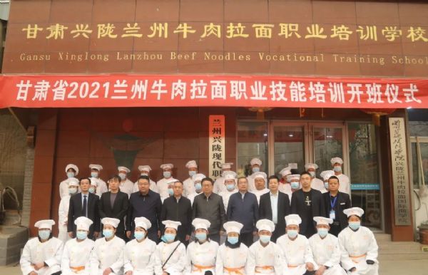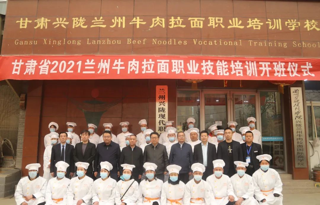 2021年3月16日,甘肅省2021年蘭州牛肉拉面職業技能培訓開班儀式在甘肅興隴蘭州牛肉拉面職業培訓學校正式啟動。