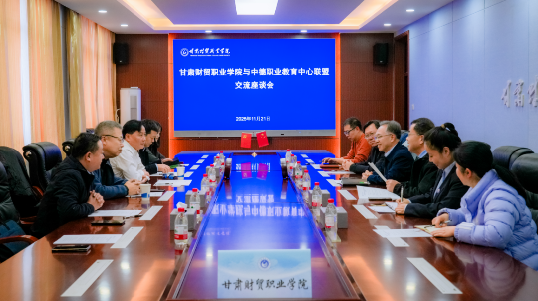 甘肅財貿職業學院與中德職業教育中心聯盟舉行交流座談會。校長張夢濤及相關部門負責人參會,德方代表團由中德職業教育中心聯盟主席Prof. Yujie Yao帶隊,金味德拉面文化產業集團董事長梁順儉等企業代表共同出席。