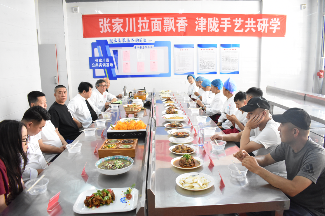 7 月 22 日,應張家川縣邀請,甘肅金味德拉面文化產業集團董事長一行出席以 “津隴味交融 廚藝共傳承” 為主題的餐飲交流活動啟動儀式,并實地參觀了張家川縣公共實訓基地、伊悅萬福醋業等。