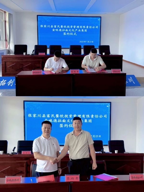 同日,作為蘭州牛肉拉面產業供應鏈鏈主企業的甘肅金味德拉面文化產業集團,與張家川回族自治縣富民餐飲投資管理有限公司正式簽署戰略合作協議,標志著張家川牛肉拉面與蘭州牛肉拉面供應鏈鏈主企業的戰略合作全面啟動。