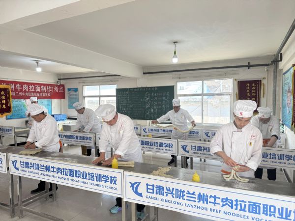 “工匠精神的核心是精益求精,而科學化、體系化培養(yǎng),是讓傳統(tǒng)技藝薪火相傳的關(guān)鍵。”甘肅興隴牛肉拉面職業(yè)培訓學校校長梁亞楠坦言,傳統(tǒng)拉面技藝多靠口傳心授,標準不統(tǒng)一、傳承效率低,而產(chǎn)教融合模式徹底打破了這一局限。除了核心拉面技藝教學,學校創(chuàng)新推出“技能+經(jīng)營”雙軌培養(yǎng)模式,既系統(tǒng)傳授臊子面、涼面等西北特色面食,以及灰豆子、甜醅子等蘭州經(jīng)典小吃制作技法,又全覆蓋開展店面設(shè)計、成本控制、運營管理、品牌打造等創(chuàng)業(yè)指導(dǎo),破解學員“會做面、不會開店”的難題。