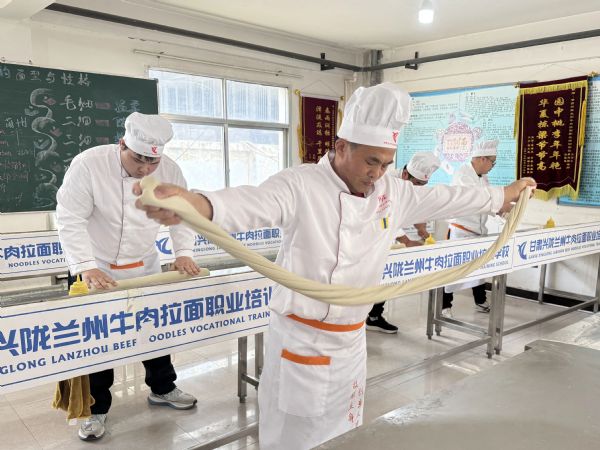 為加快人才培育速度、擴大培育規模,蘭州市深入實施“百千萬”育才工程,構建梯次化人才培養體系。一方面,認定甘肅興隴牛肉拉面職業培訓學校等機構為市級高技能人才培訓基地,設立常小平等技能大師工作室,形成“基地+工作室”的培育矩陣;另一方面,單列“牛肉拉面制作師”補貼性培訓計劃,通過“人力資源服務+產業協同+工匠教育”模式,支持企業自主培訓與市場化培訓并行。截至目前,全市累計開展補貼性培訓5674人次,完成技能評價1974人次,年培訓能力超2萬人次,全方位夯實產業人才底座。